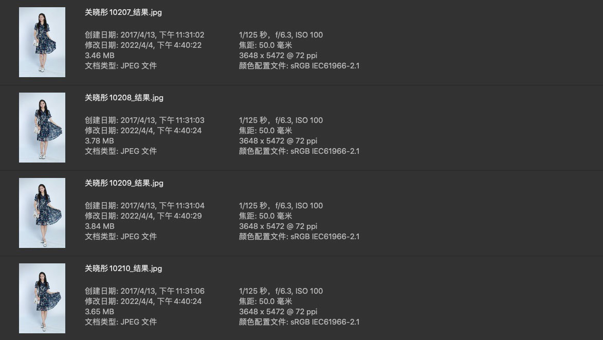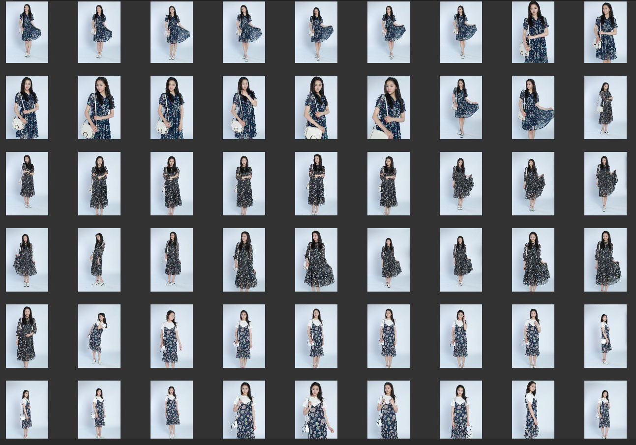 本套片子属于服装拍摄类型,三套衣服为一组,构图以全身和半身为主,全身放大后质感还行。