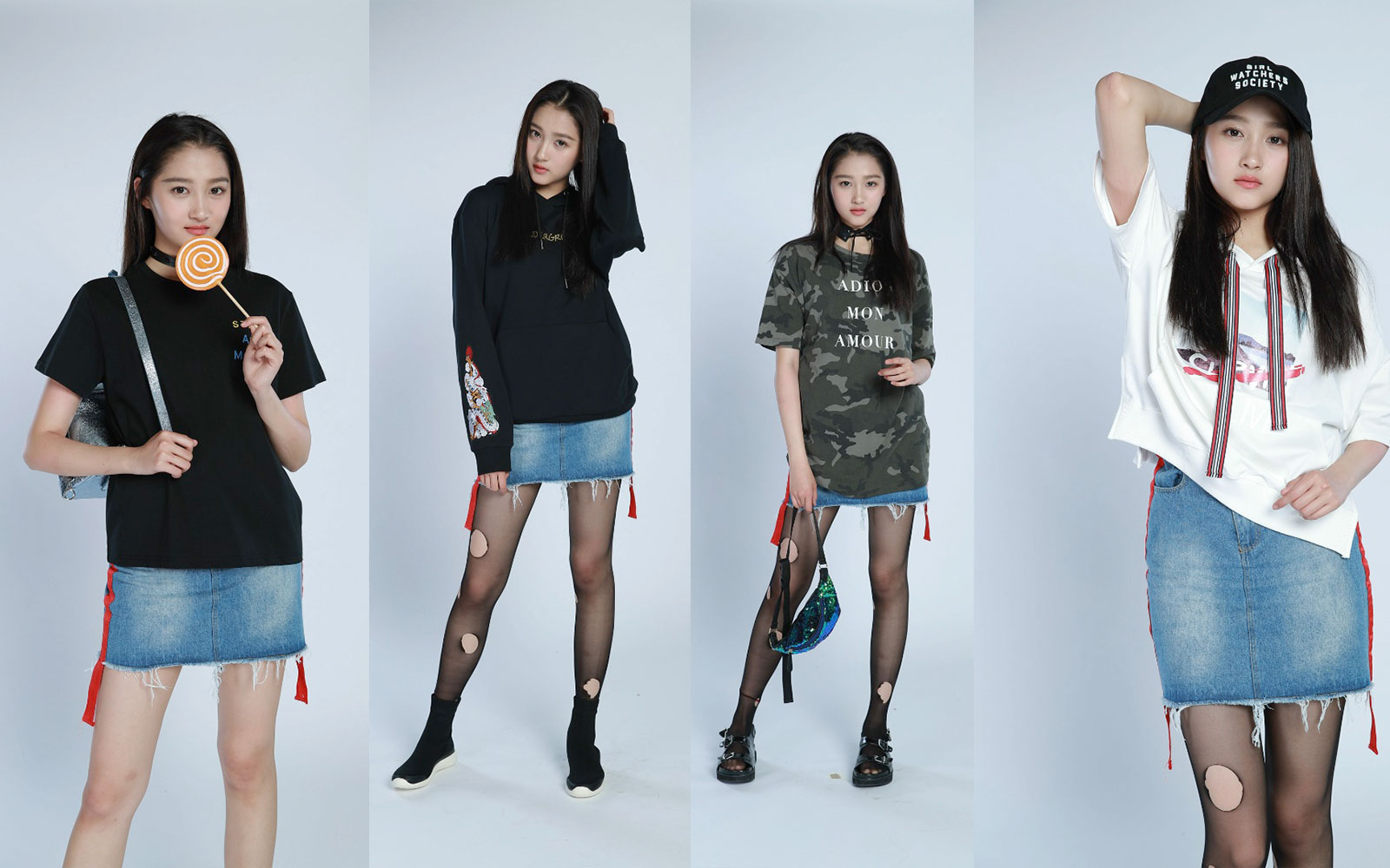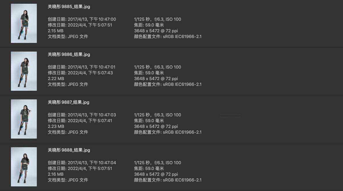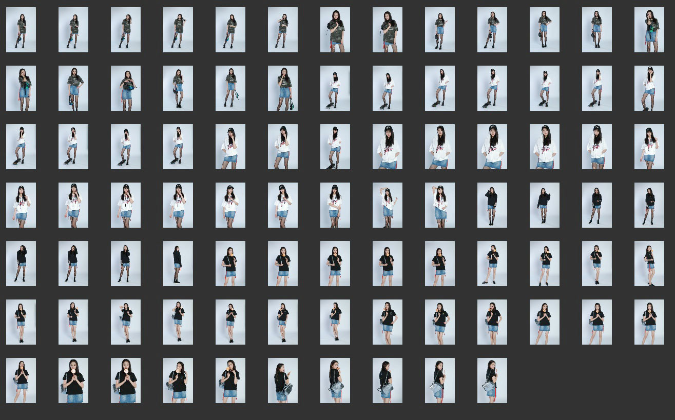 本套片子属于服装拍摄类型,三套衣服为一组,构图以全身和半身为主,全身放大后质感还行。