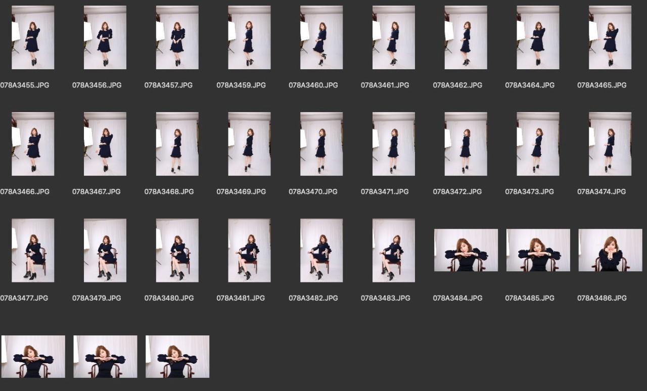 本组单套服装拍摄,构图为全身和半身,不过机位有点偏高,把人拍矮了,放大后细节一般。
