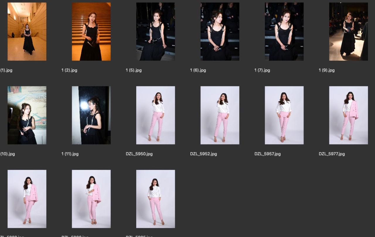 本资源分为两组,几张活动现场照和几张棚拍,主要是全身照,放大100%细节略低