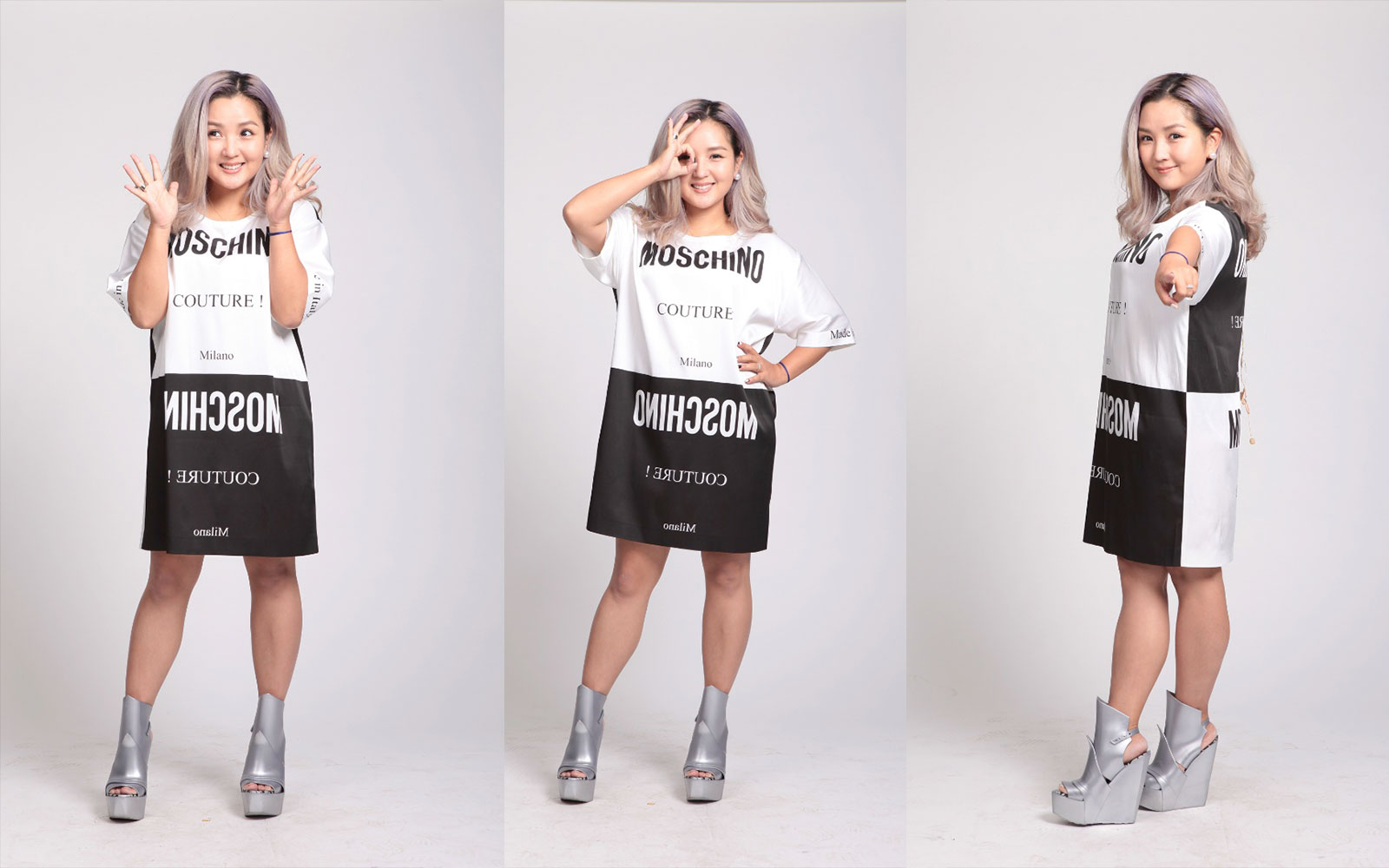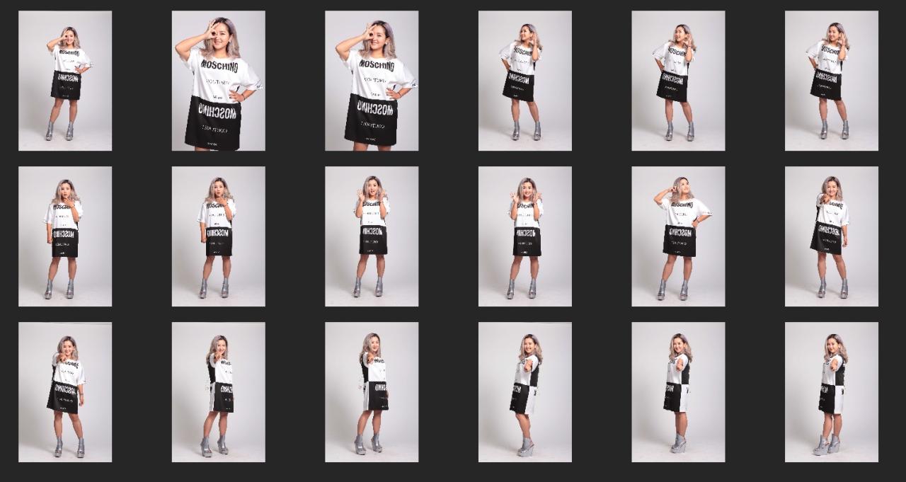 本组构图基本为全身照,灰色背景字母 T恤,放大100%后细节保留的还不错。