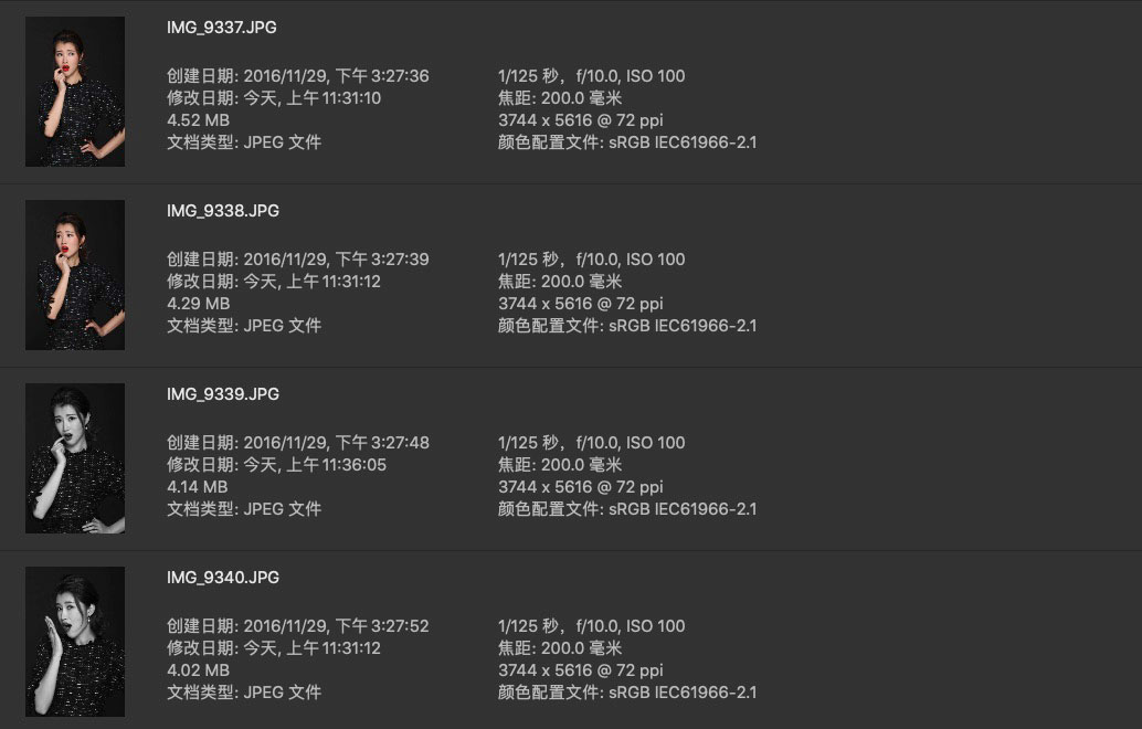 本组背景为黑色,构图包括大半身照和半身照,大半身放大到100%后质感稍显不足。