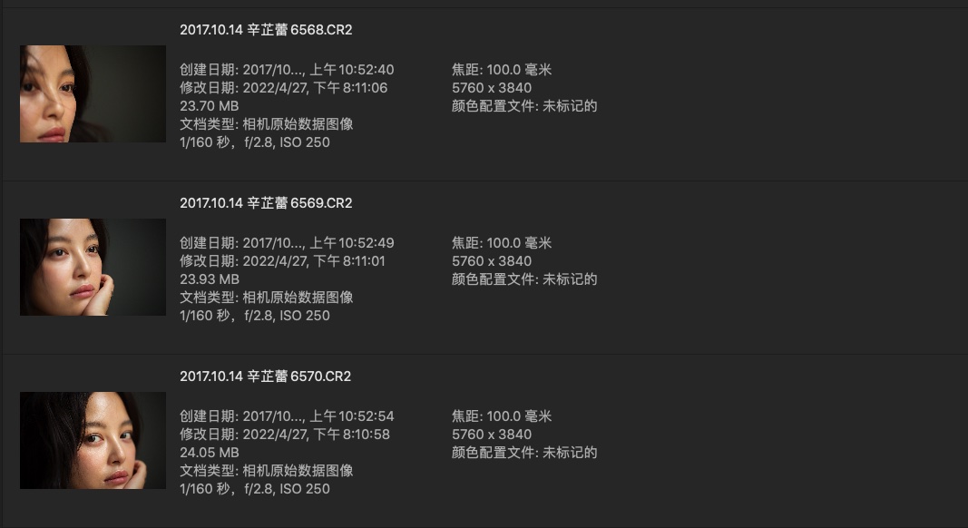 辛芷蕾早期棚内拍摄未修调照片,CR2格式,分辨率正常,感光度正常。