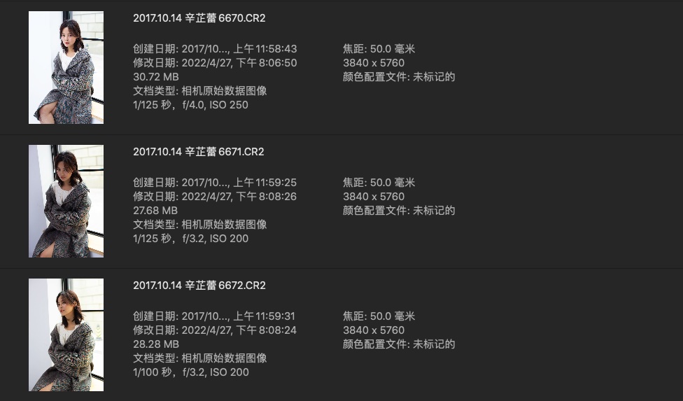辛芷蕾早期棚内拍摄未修调照片,CR2格式,分辨率正常,感光度正常。
