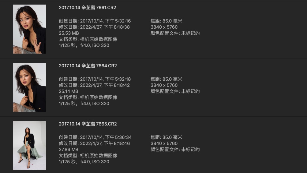 辛芷蕾早期棚内拍摄未修调照片,CR2格式,分辨率正常,感光度正常。