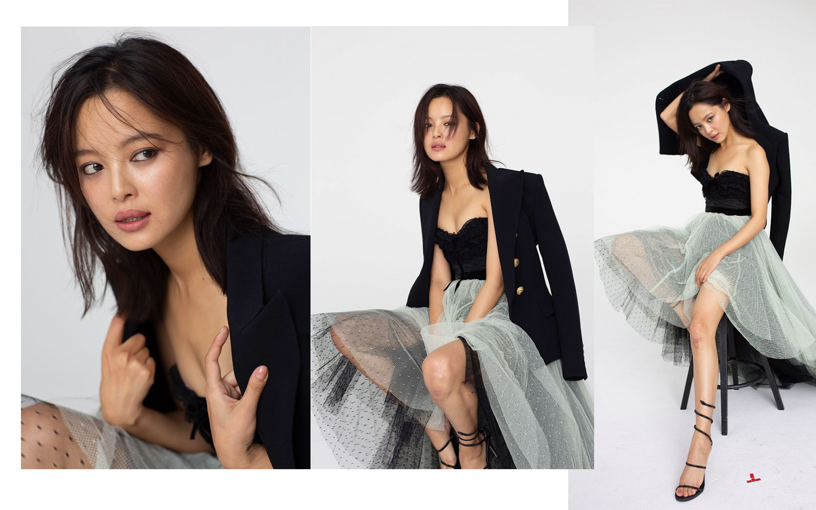 人像修图素材 辛芷蕾早期棚内拍摄 CR2格式未修原图 清灰纱裙