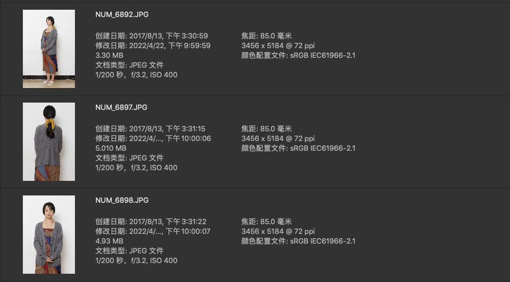本合集三套服装,属于服装摄影范畴,所以主要是看衣服,人像次之。
