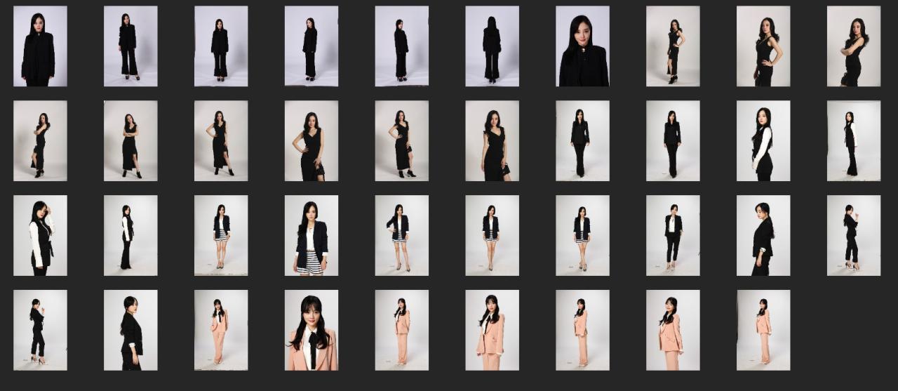 本组服装比较多但张数少,基本都是全身照,放大后细节稍差,但能用。