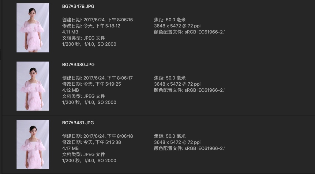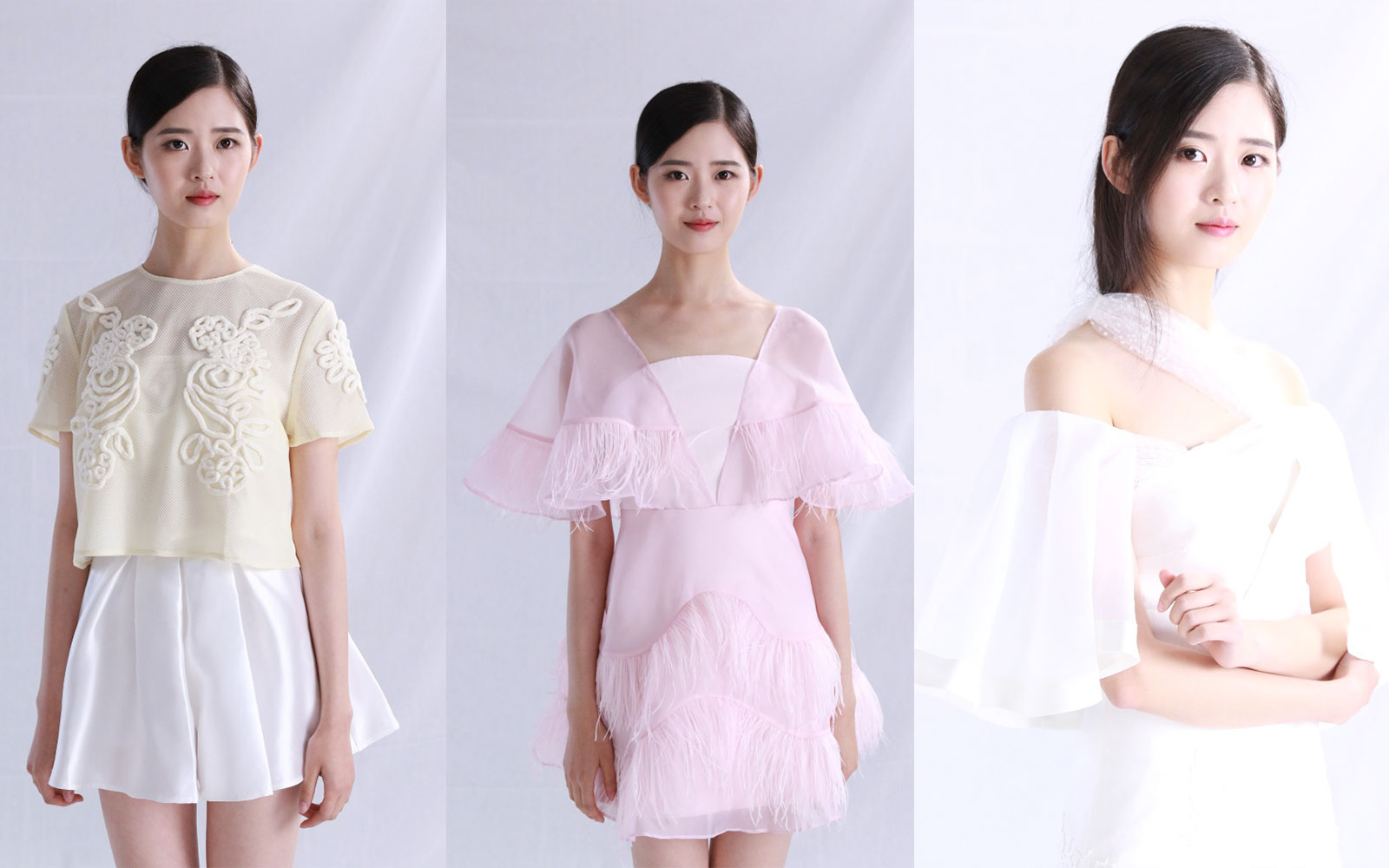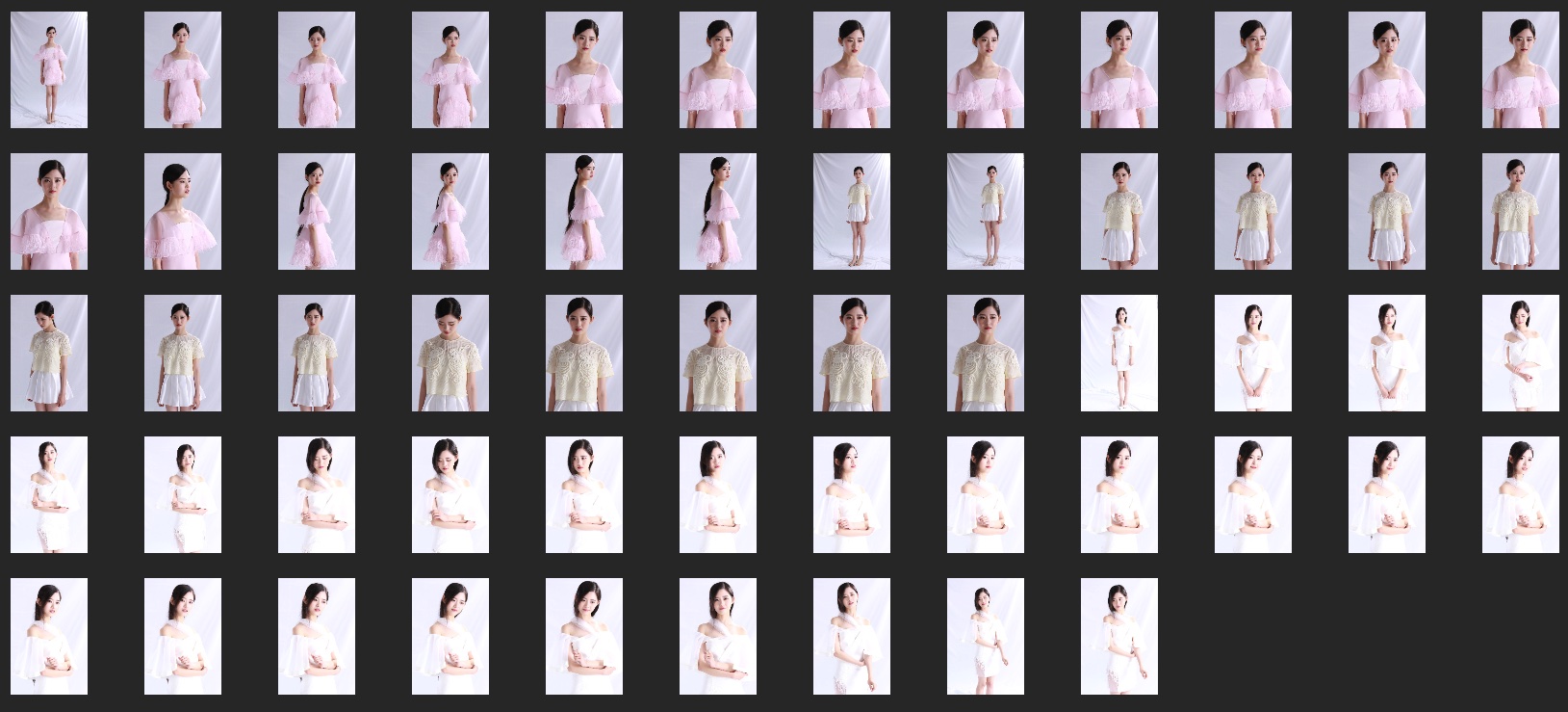 本组是三套服装的合集,期中黄、粉属于小清新风格,白色过曝了,JPG 拉不回来有些可惜。