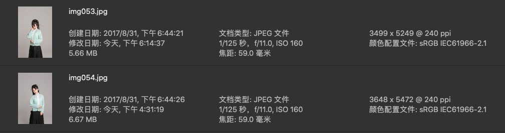 JPG格式,分辨率正常,感光度正常,ppi 偏低。