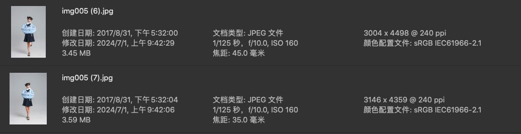 JPG格式,分辨率正常,感光度正常,ppi 偏低。