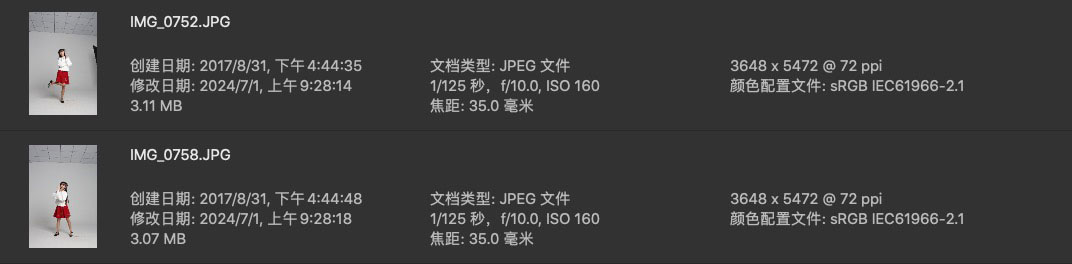 JPG格式,分辨率正常,感光度正常,ppi 偏低。