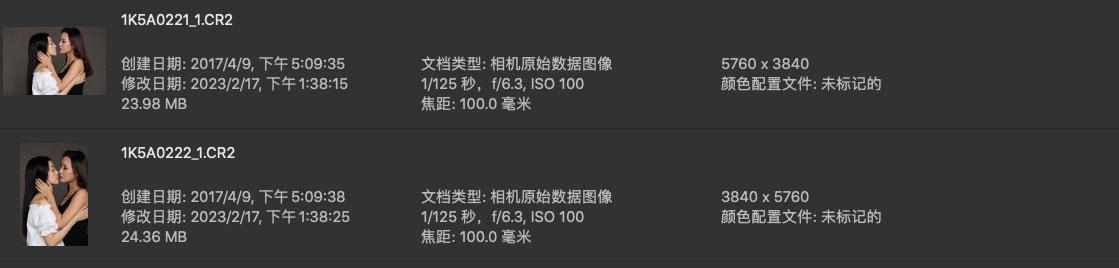 气质姊妹花的棚拍定妆照高清原片,cr2格式,分辨率正常,感光度正常。