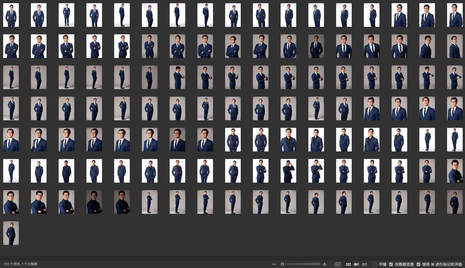 棚拍照片,灰色背景为主,白色背景也有几张。