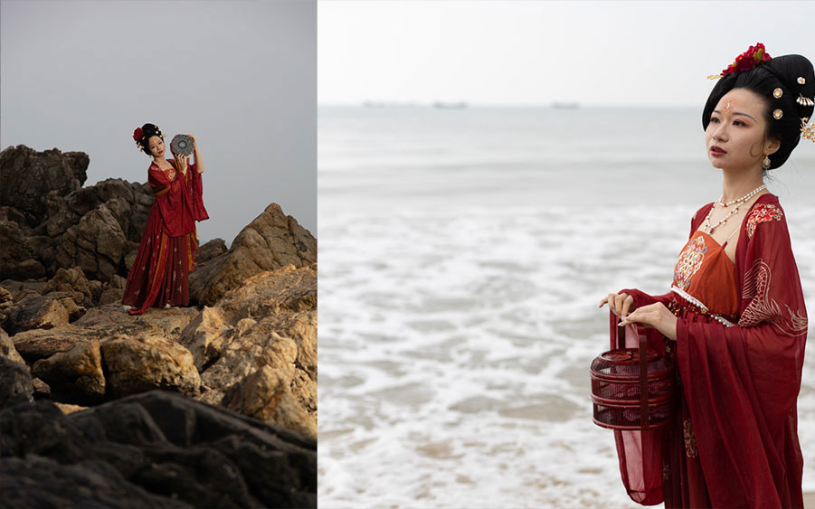 未经允许不得转载:修图师 » 修图练习素材 CR3格式未修原图 海边礁石红色汉服套装造型