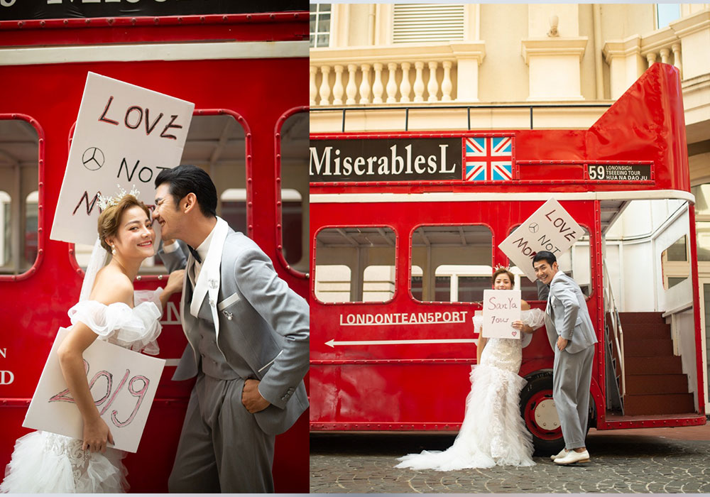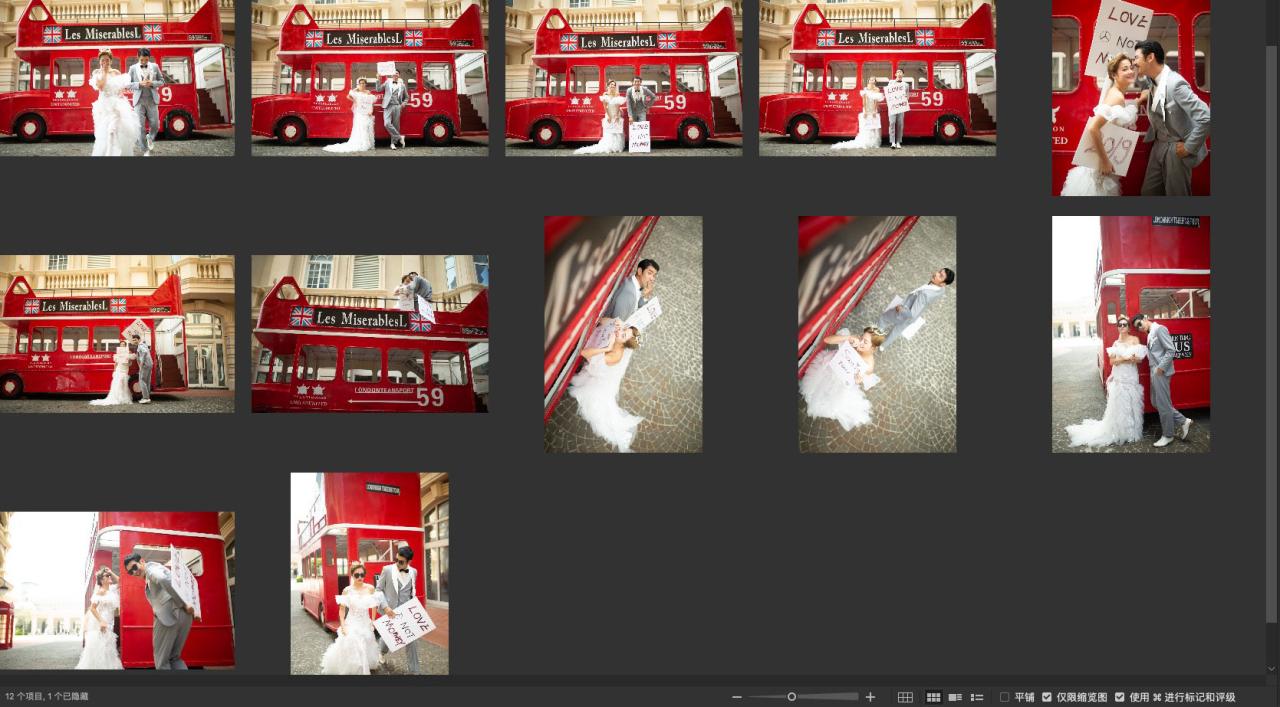 国人婚纱影楼典型的婚纱照样片,构图混乱,人物占比过低。