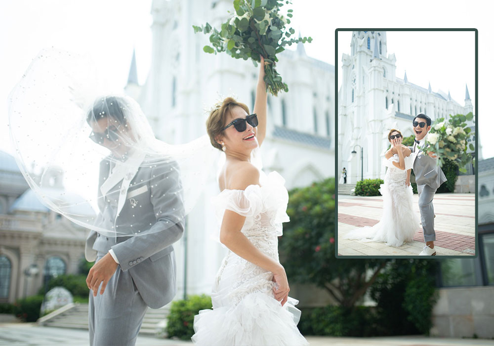 国人婚纱影楼典型的婚纱照样片,还是构图问题,人物占比过小。