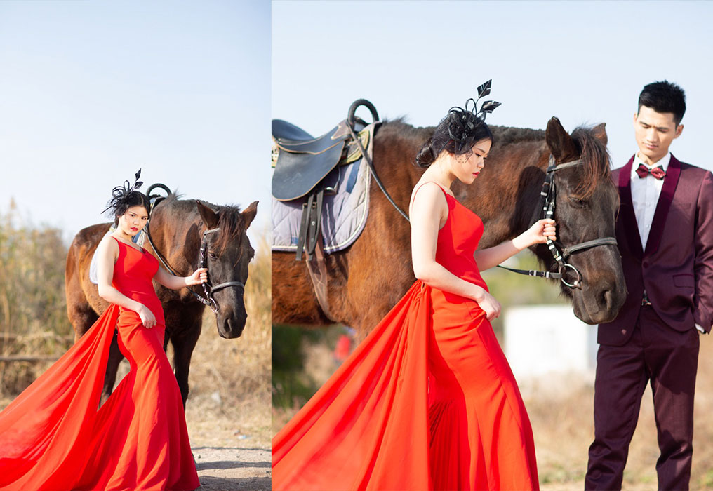 国人婚纱照外景拍摄,这个马感觉有点多余啊。
