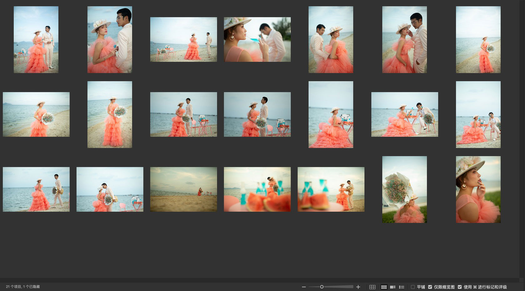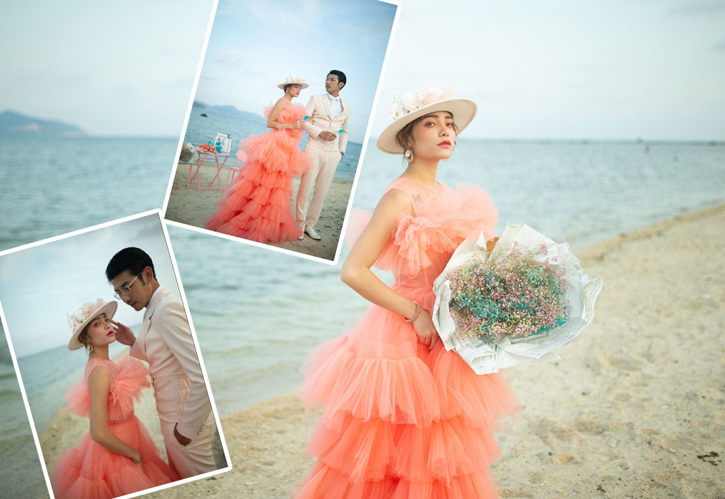 海景沙滩冷暖配色婚纱照样片未修调照片。