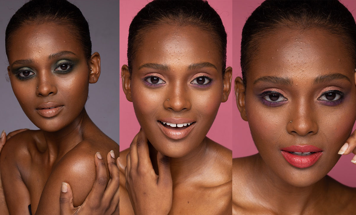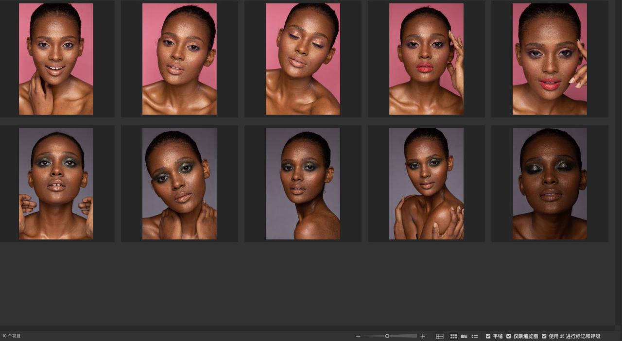 很典型的头部特写棚拍,只不过美女皮肤比较黑罢了,双曲线精修饱和度降低就很不错。