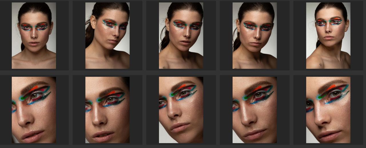 这种构图,主要就是表现面部一些妆容,比如裸妆、彩妆、唇妆、眼妆等等