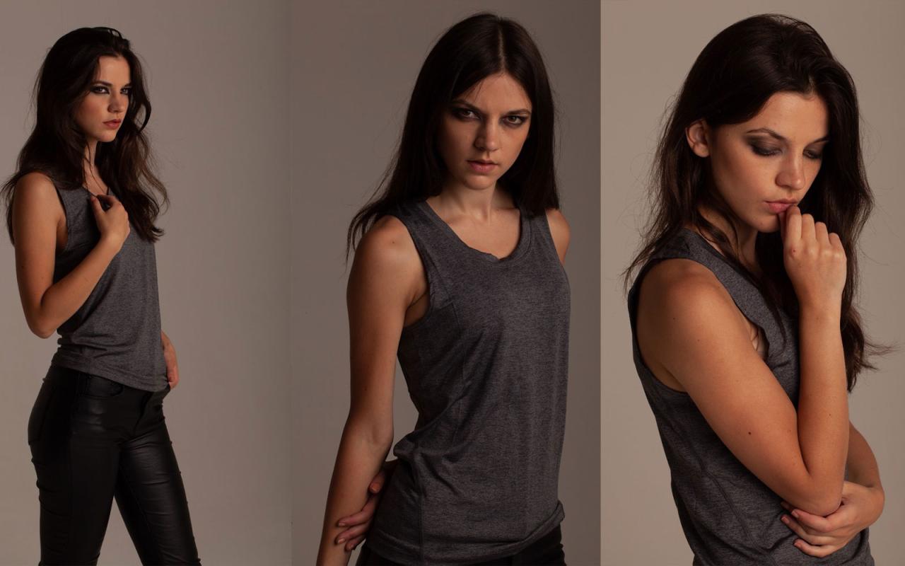 灰背景棚拍欧美穿背心女子未修调照片,cr2格式,分辨率一般,感光度正常。