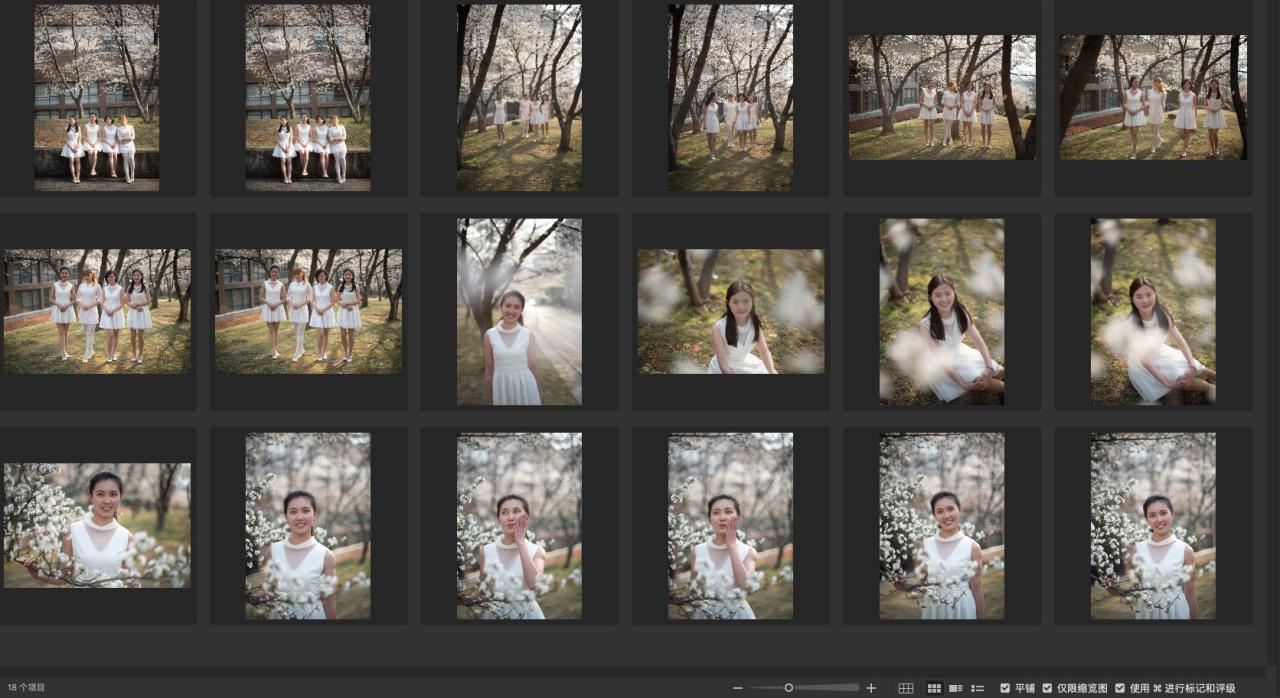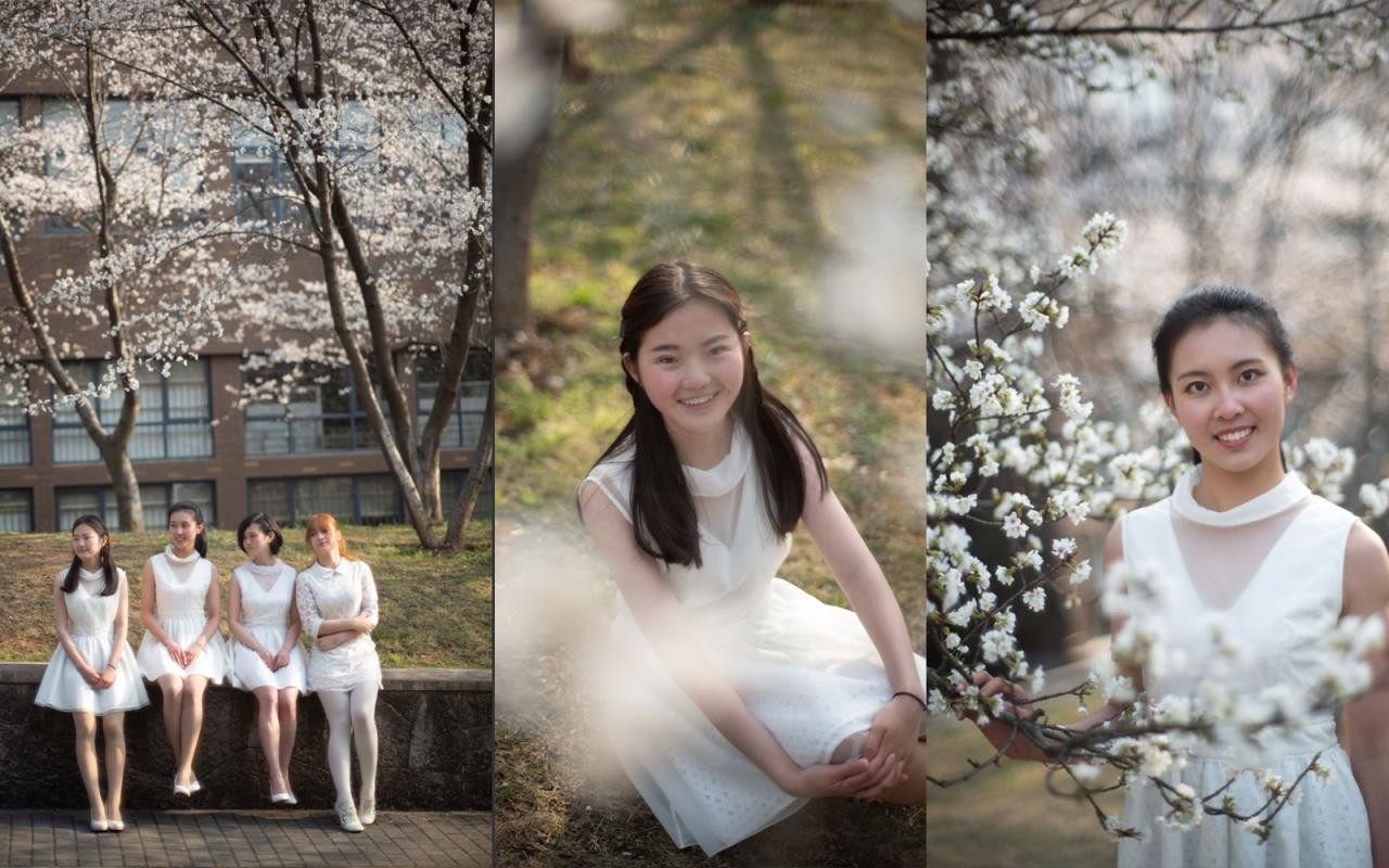 白花配白裙,同色系合影照,合影放大后质感低,单人照好还可以。