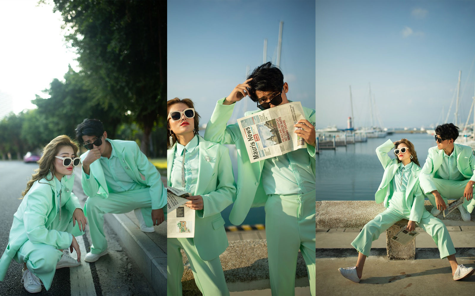 身着绿色套装的撒欢情侣未修调照片, cr2格式,分辨率正常,感光度正常。