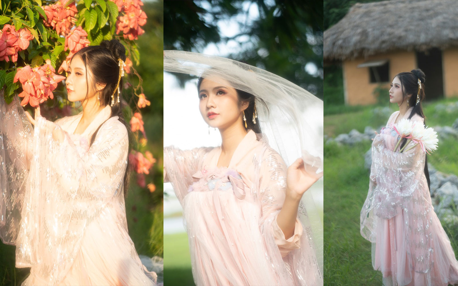 古粉色纱裙美女古风外景拍摄未修调照片,arw格式,分辨率不错,感光度正常。