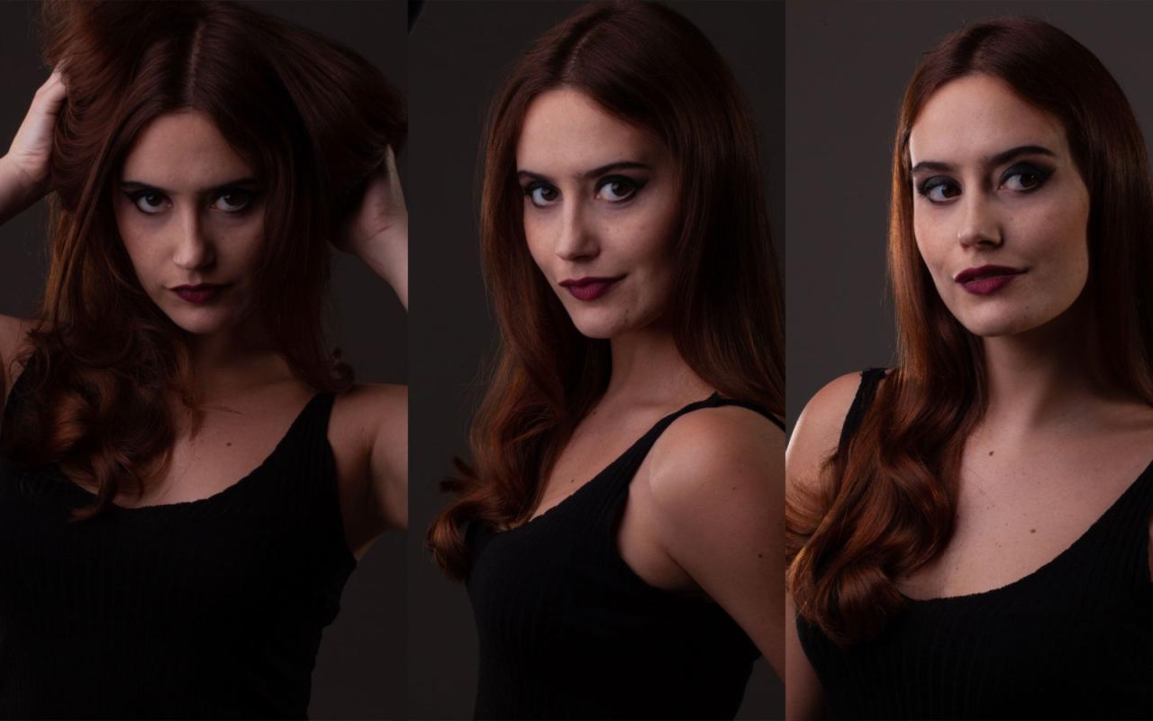单组棚拍,小半身构图,模特面部结构感很强,适合精修练习。