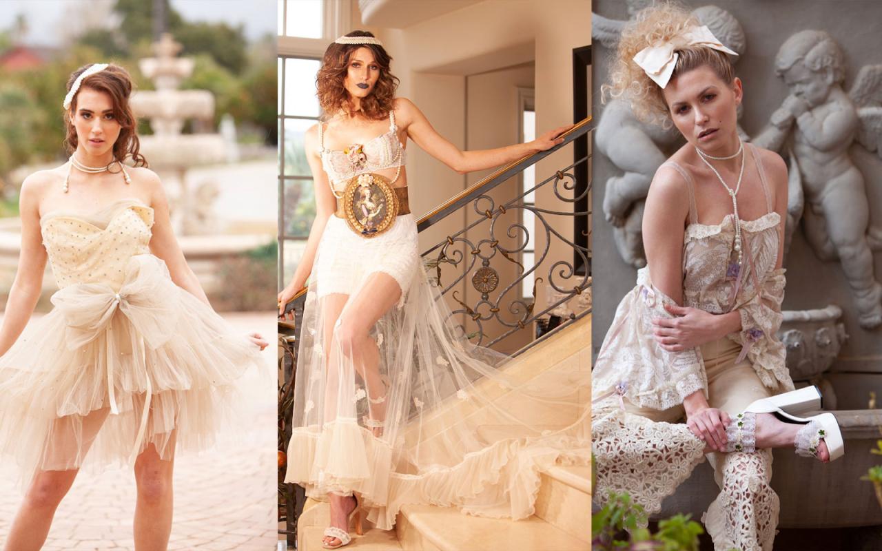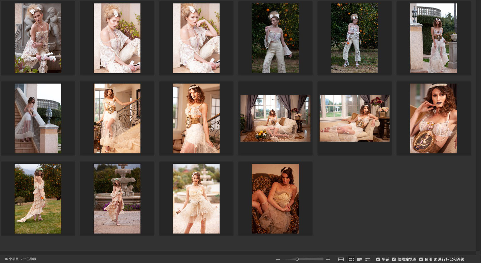 两位模特的纱裙造型,户外和室内场景都有,放大后质感不错。