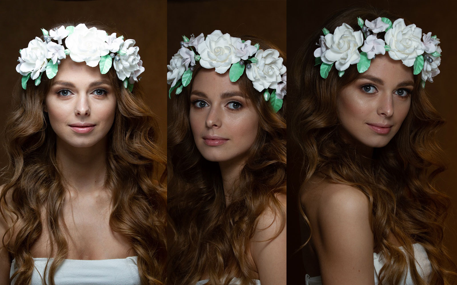 本组主要是特写镜头,头戴白色花朵,细节质感没的说,修图师绝佳练习单品。