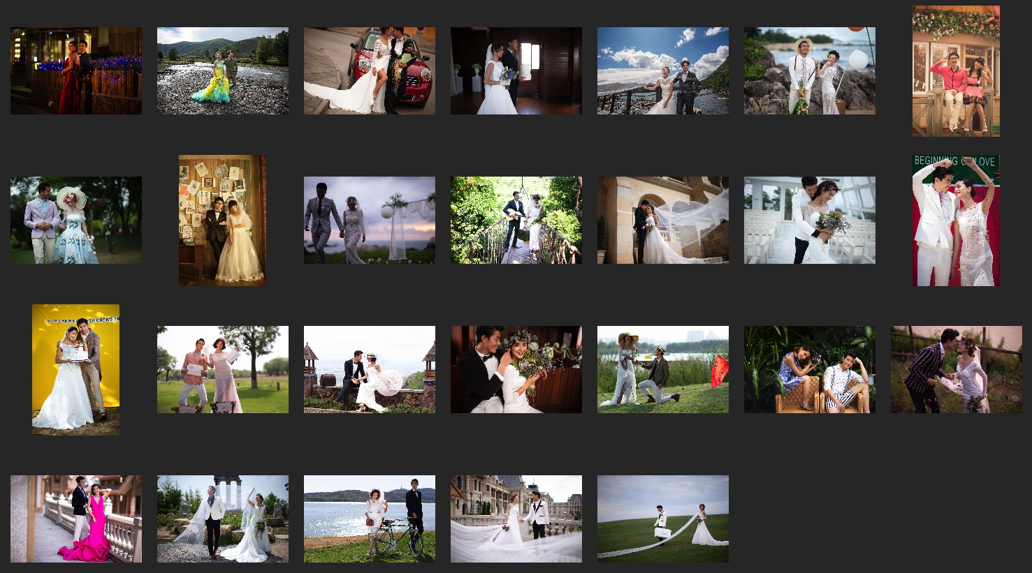 多组合集,主要是外景婚纱样片,感光度不统一,放大后质感还好。