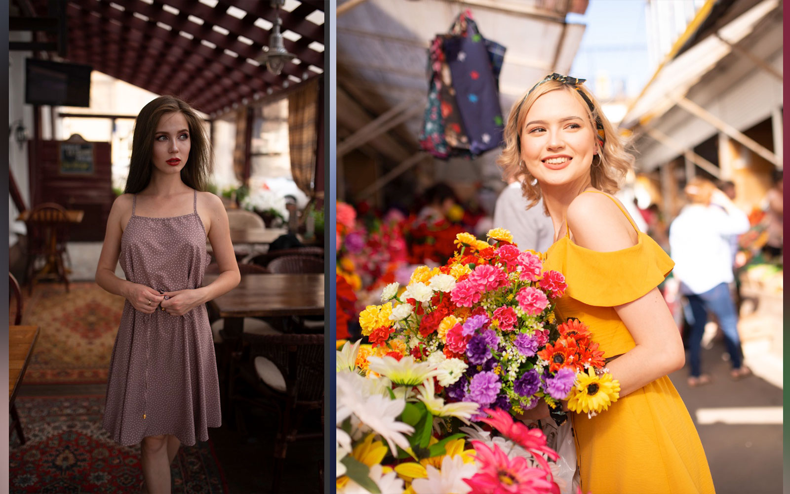 两位模特两种风格,半身特写构图,放大后细节和质感不错。