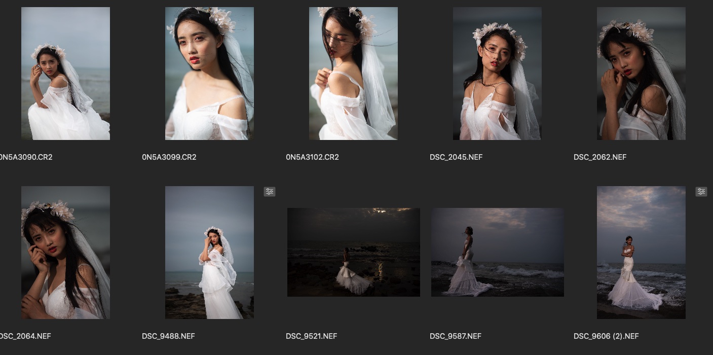 婚纱照人像拍摄未修调照片, NEF-CR2格式,分辨率正常,感光度正常。
