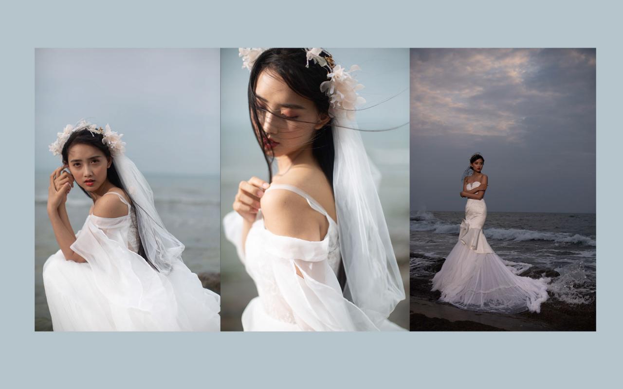 海边单人婚纱照,有几张过曝,几张欠曝,不过都可以调回来。