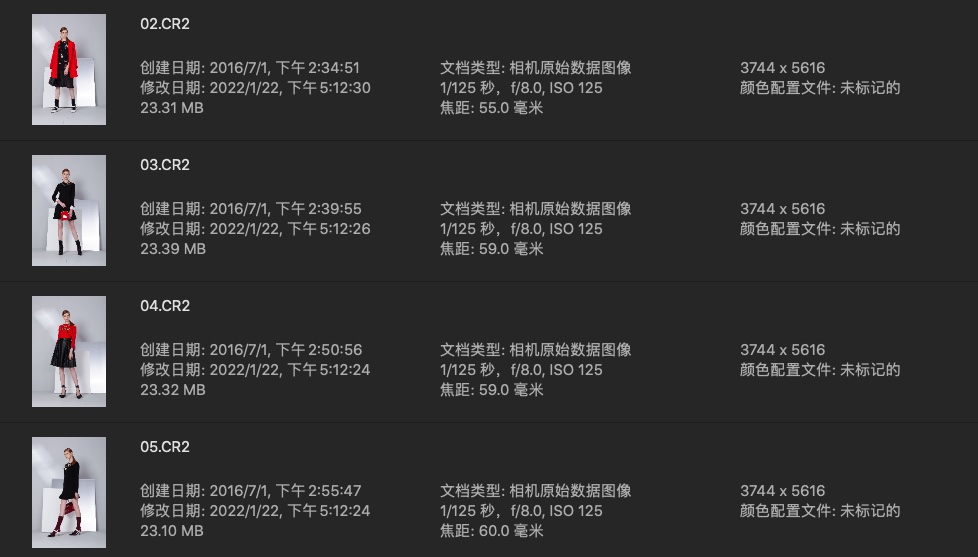服装拍摄未修调照片,CR2格式,分辨率正常,感光度正常。