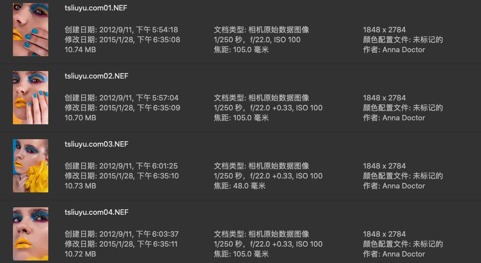 一组四张,全部都是面部特写镜头,可以练习一下后期配色。