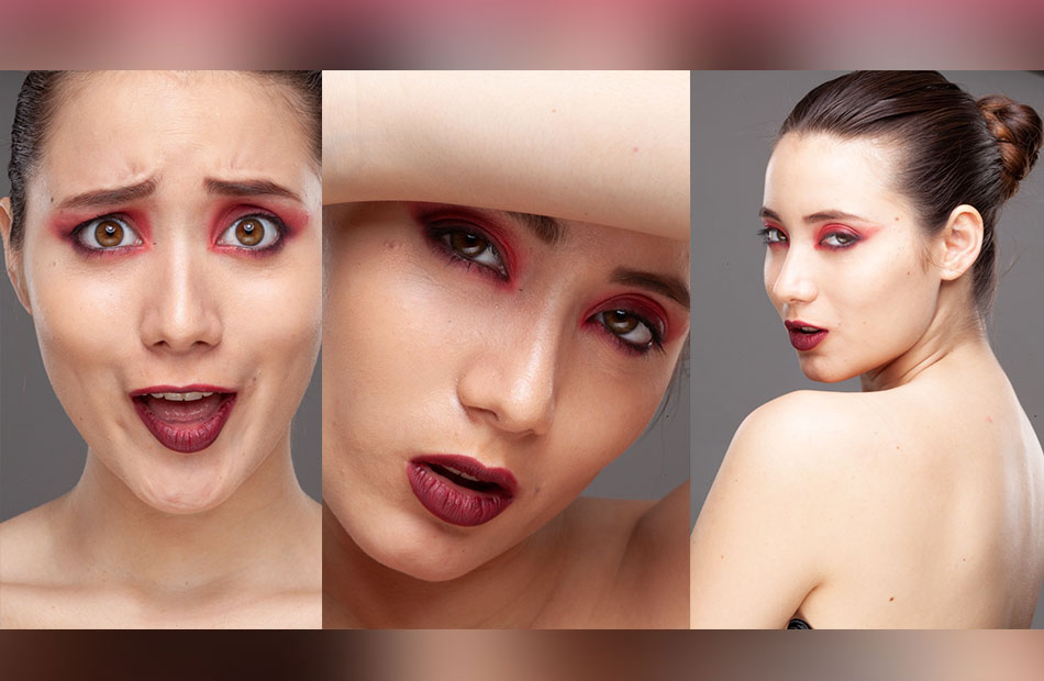 女子棚内拍摄头部特写,人像精修练习素材。