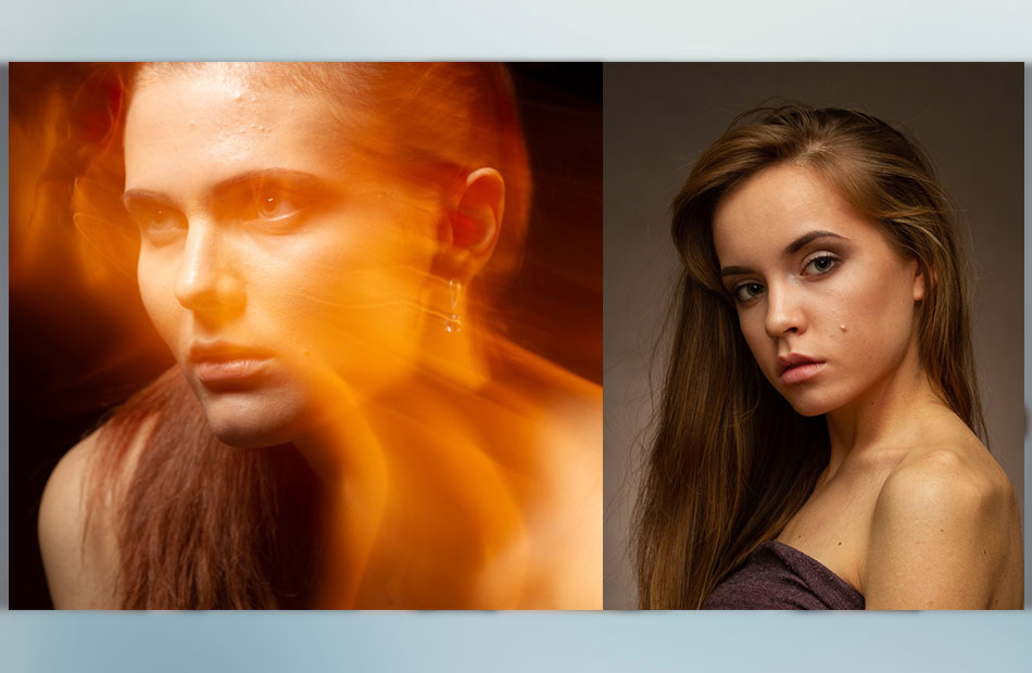 欧美女子暗调棚内拍摄半身特写,人像精修练习素材。