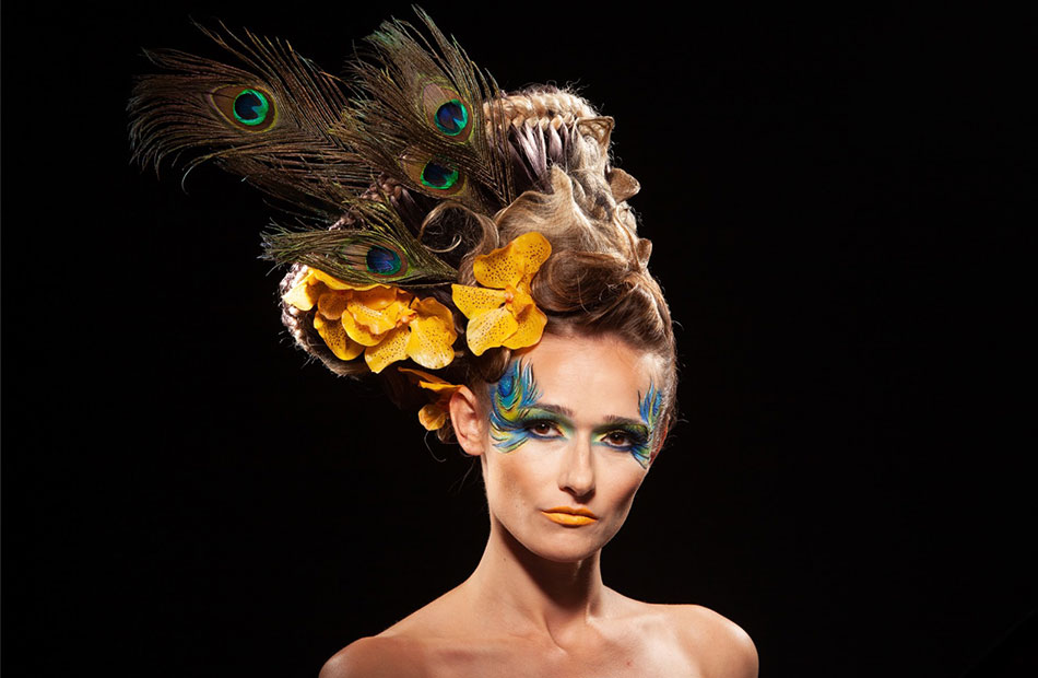 孔雀羽毛彩妆棚拍模特素材,人像精修练习素材。