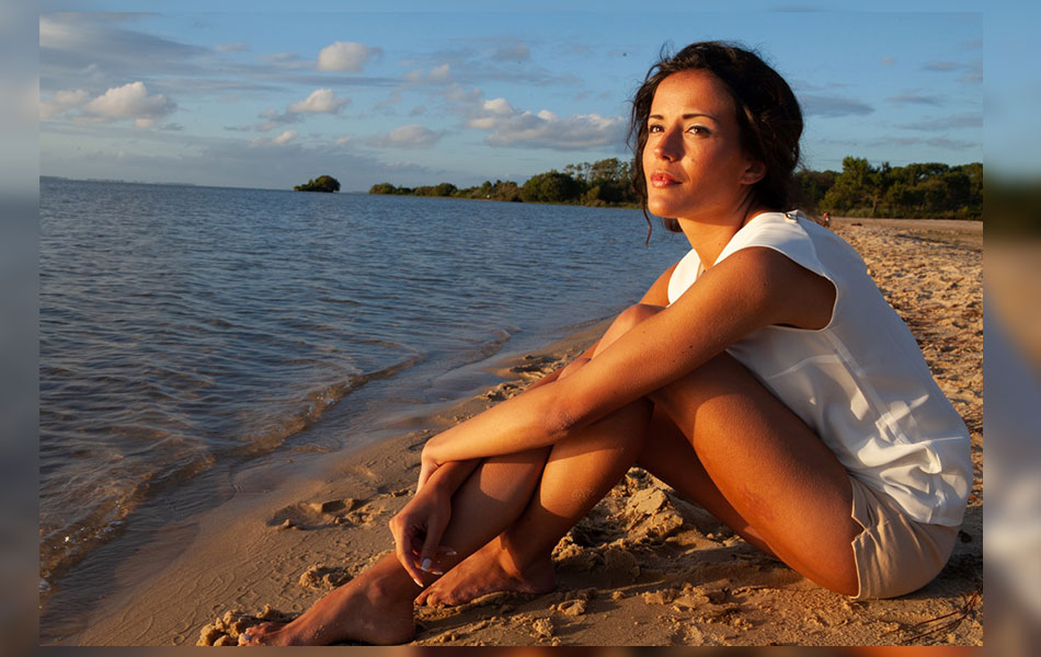 傍晚的海边女模特外景拍摄像素材,人像精修练习素材。